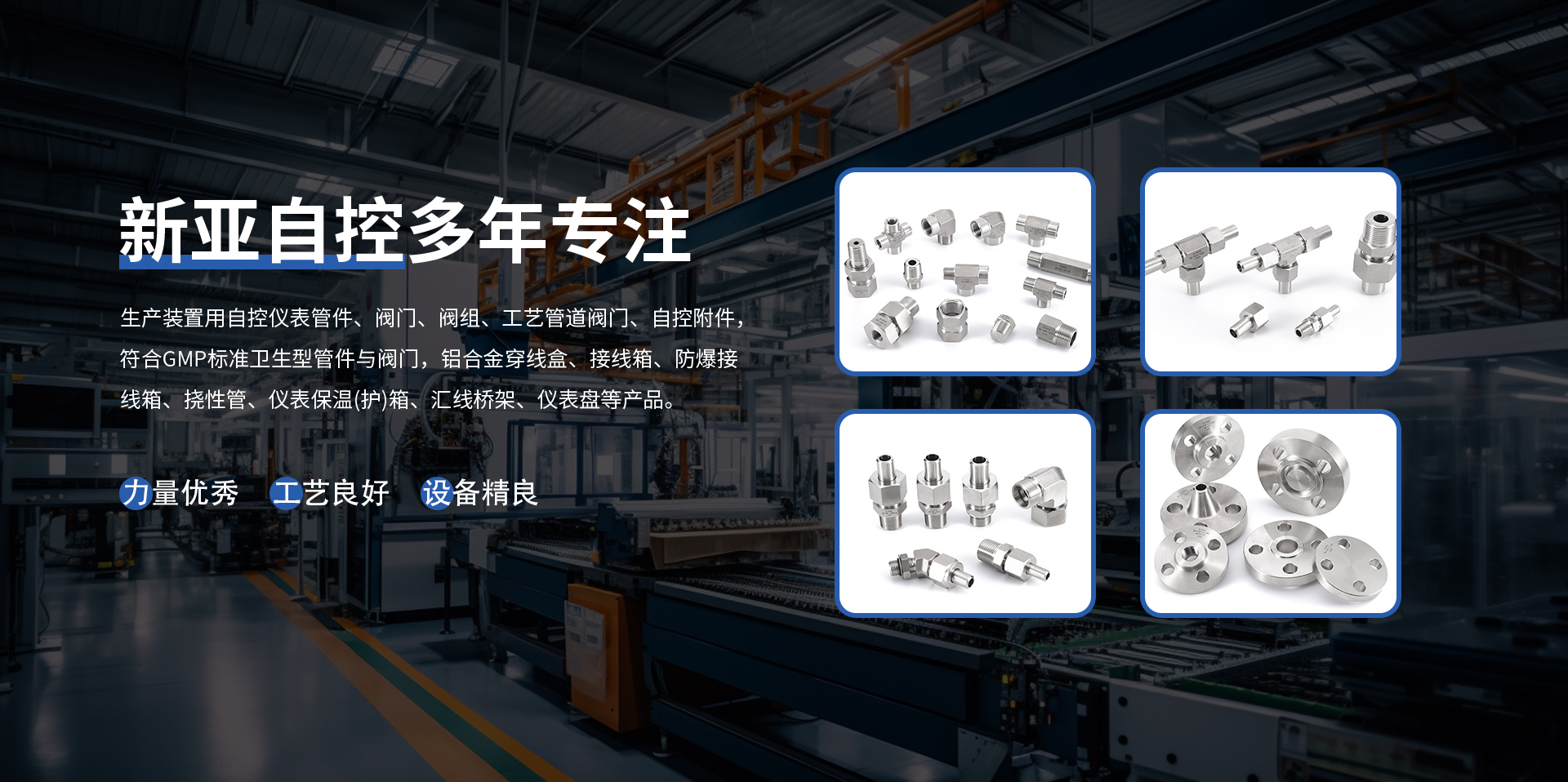 揚(yáng)中新亞自控工程有限公司,成立于1995年,地處繁榮富庶的長江金三角,座落在聞名遐邇的水上花園城市、生態(tài)示范區(qū)一揚(yáng)中市。東傍上海和蘇、錫、常,西臨南京,南屬鎮(zhèn)江,北望揚(yáng)州,環(huán)境優(yōu)美,交通便捷,區(qū)域位置良好。公司以市場為導(dǎo)向,引進(jìn)現(xiàn)代化技術(shù),發(fā)展壯大本土企業(yè),生產(chǎn)與歐、美、國產(chǎn)等裝置用自控儀表管件、閥門、閥組、工藝管道閥門、自控附件,符合GMP標(biāo)準(zhǔn)衛(wèi)生型管件與閥門,內(nèi)燃機(jī)配件、儀器儀表、橋架、五金、橡膠制品等產(chǎn)品。